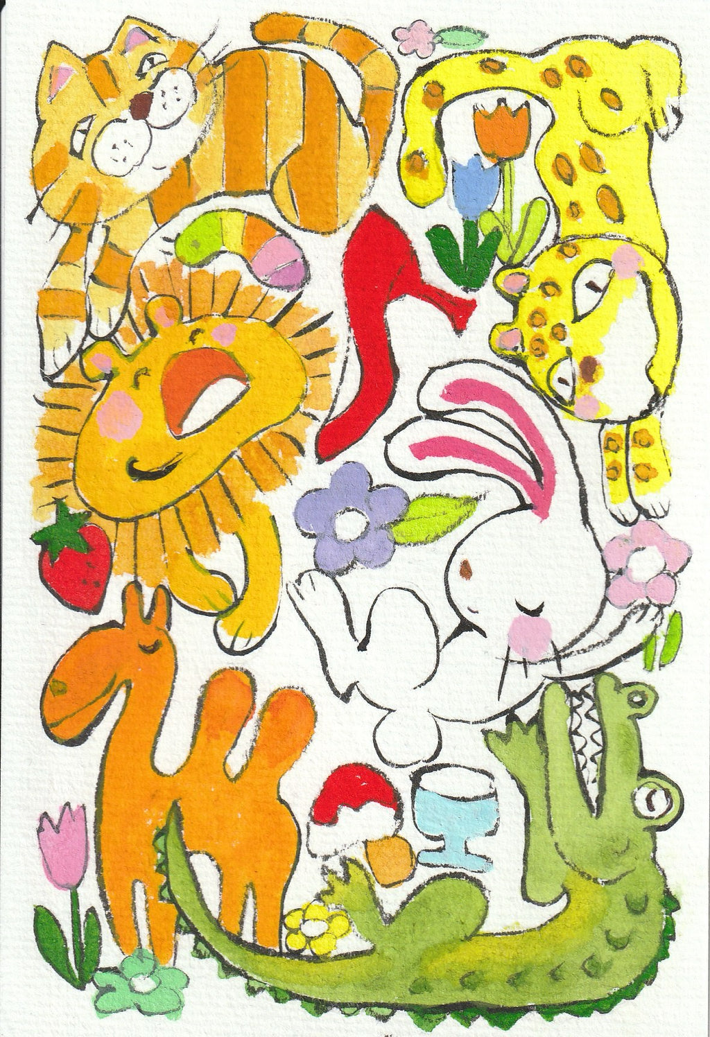 一点一点「てがき」ですので似た構図はあっても同じものはございません。 どの絵柄も大変可愛らしく、また色鮮やかですので、